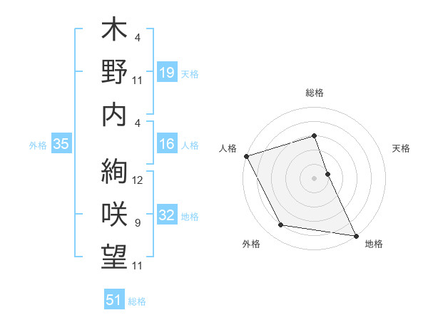 木野内 絢咲望さんの総格は51画の3点!