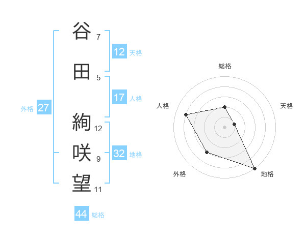 谷田 絢咲望さんの総格は44画の2点!