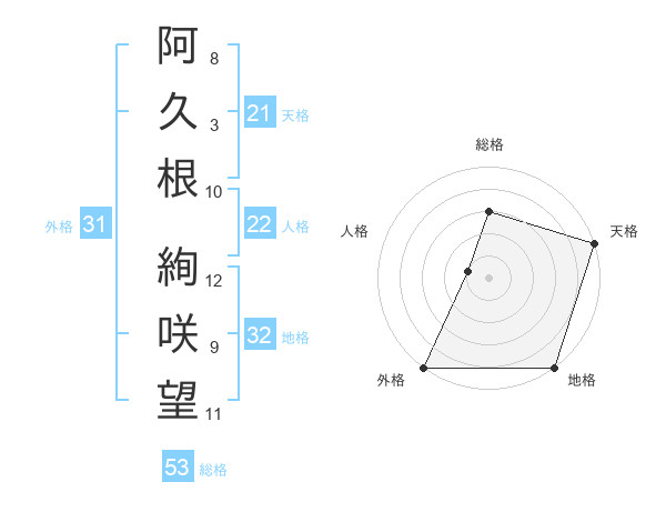 阿久根 絢咲望さんを姓名の画数から五運を鑑定