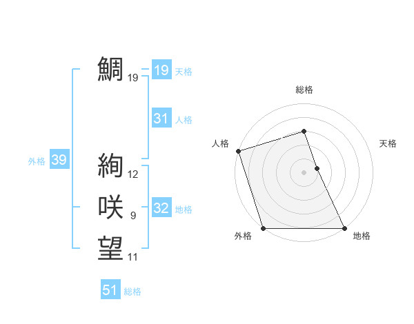 鯛 絢咲望さんを姓名の画数から五運を鑑定