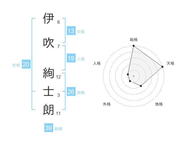伊吹 絢士朗さんを姓名の画数から五運を鑑定
