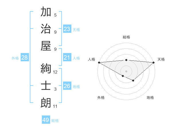 加治屋 絢士朗さんの天格は23画の5点!