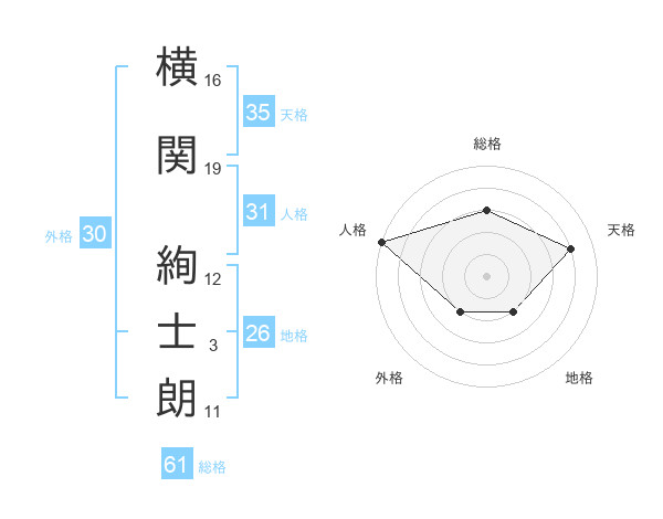 横関 絢士朗さんを姓名の画数から五運を鑑定