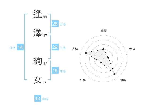 逢澤 絢女さんを姓名の画数から五運を鑑定