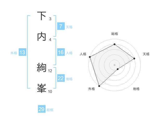 下内 絢峯さんの外格は13画の5点!