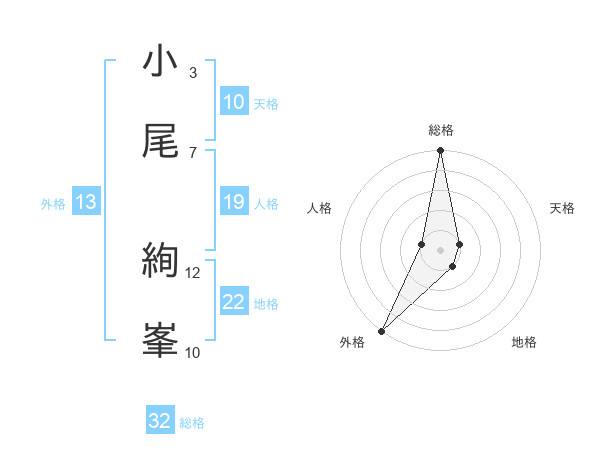小尾 絢峯さんの総格は32画の5点!