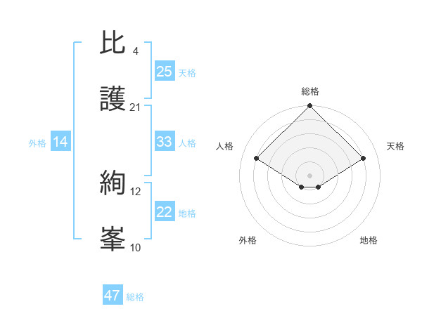 比護 絢峯さんの総格は47画の5点!