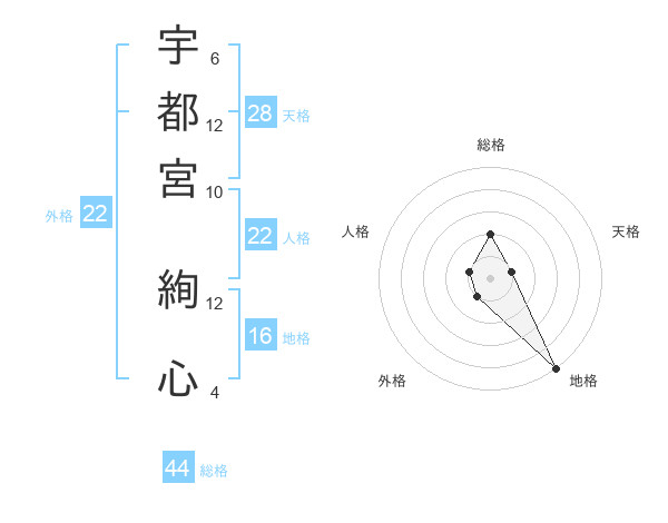 宇都宮 絢心さんを姓名の画数から五運を鑑定
