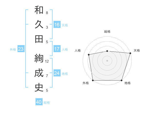 和久田 絢成史さんの外格は23画の5点!