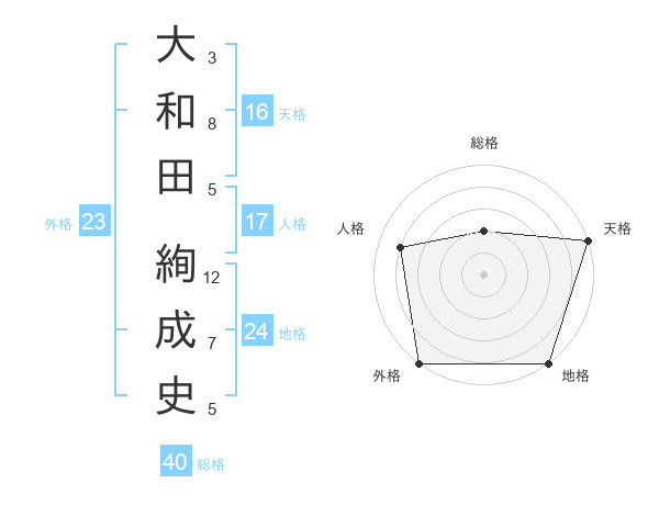 大和田 絢成史さんを姓名の画数から五運を鑑定
