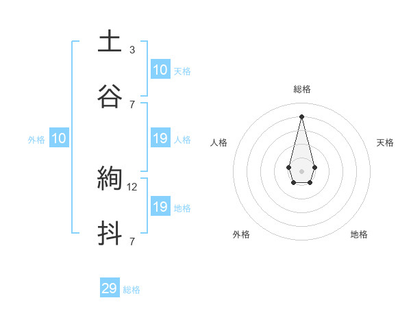 土谷 絢抖さんの総格は29画の4点!