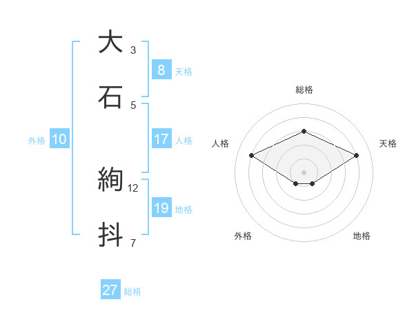 大石 絢抖さんを姓名の画数から五運を鑑定