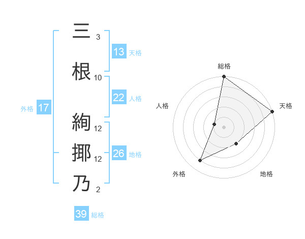 三根 絢揶乃さんを姓名の画数から五運を鑑定