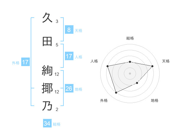 久田 絢揶乃さんを姓名の画数から五運を鑑定