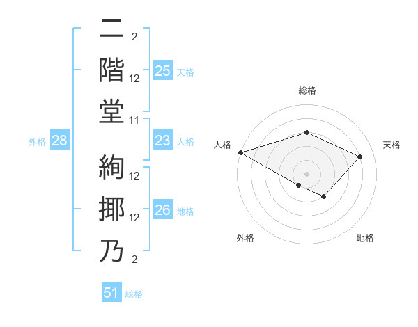 二階堂 絢揶乃さんの総格は51画の3点