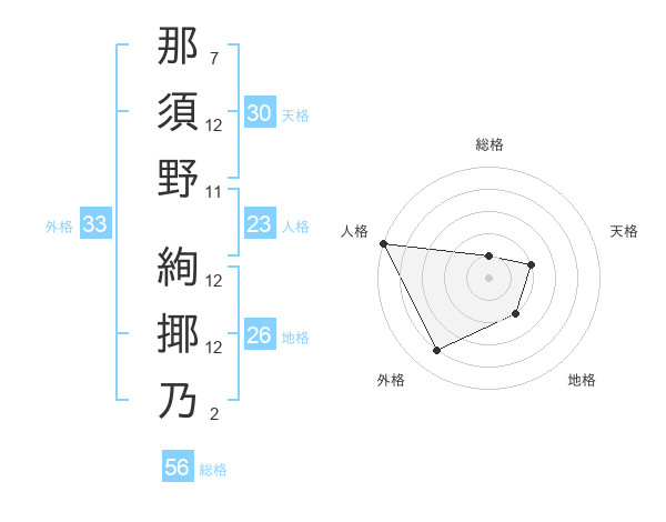 那須野 絢揶乃さんを姓名の画数から五運を鑑定