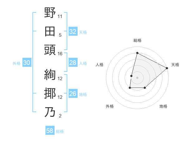 野田頭 絢揶乃さんを姓名の画数から五運を鑑定
