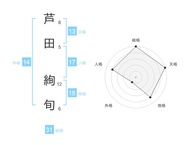 芦田 絢旬さんを姓名の画数から五運を鑑定