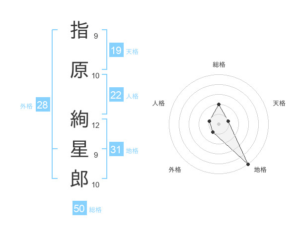 指原 絢星郎さんの総格は50画の2点!