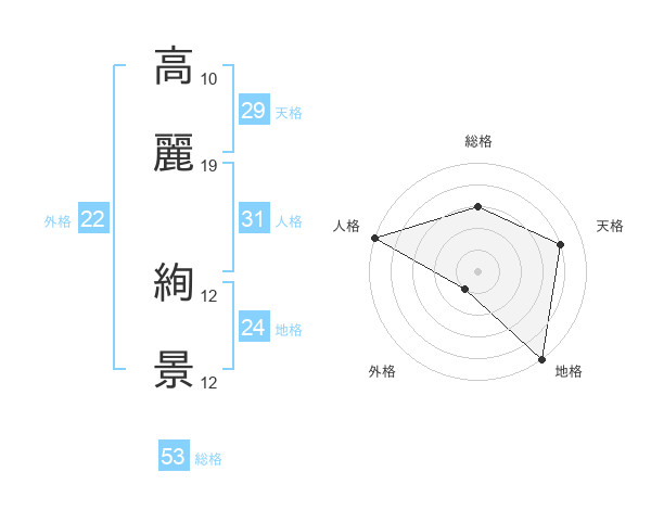 高麗 絢景さんの総格は53画の3点!