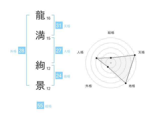 龍満 絢景さんを姓名の画数から五運を鑑定