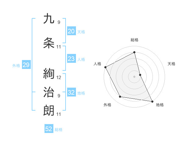 九条 絢治朗さんの総格は52画の4点!
