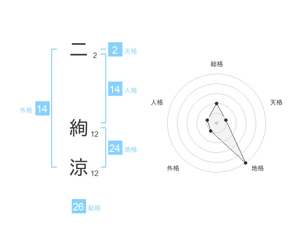 二 絢涼さんの外格は14画の1点!