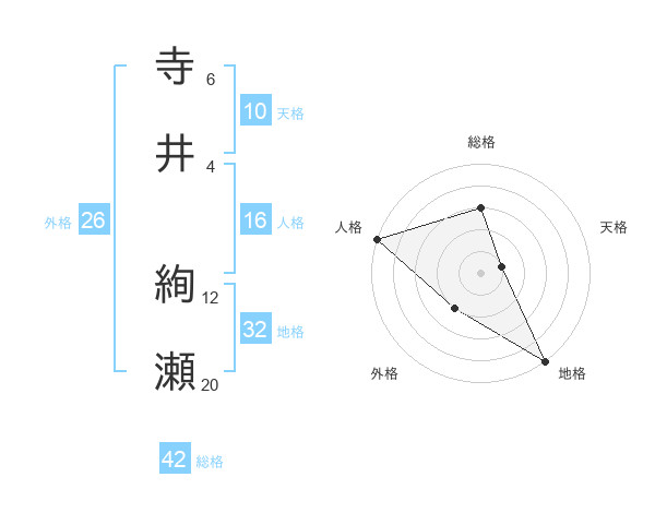 寺井 絢瀬さんの総格は42画の3点!