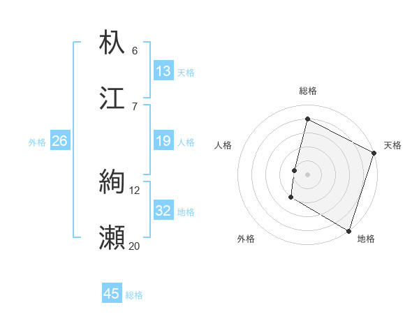 杁江 絢瀬さんを姓名の画数から五運を鑑定