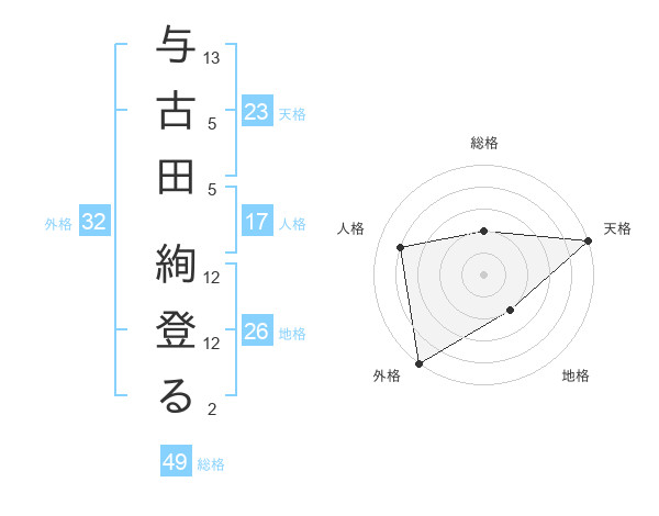 与古田 絢登るさんを姓名の画数から五運を鑑定