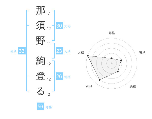 那須野 絢登るさんを姓名の画数から五運を鑑定