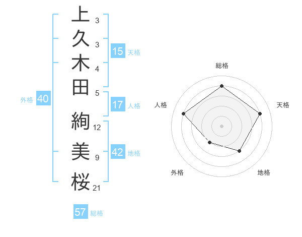 上久木田 絢美桜さんの総格は57画の4点