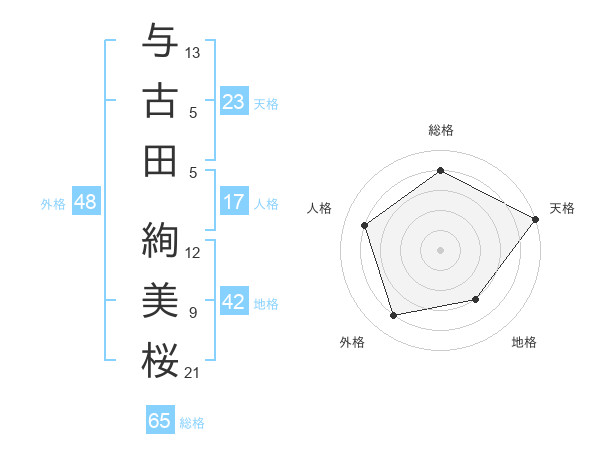 与古田 絢美桜さんを姓名の画数から五運を鑑定