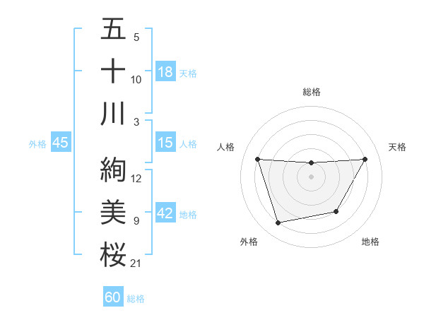 五十川 絢美桜さんの総格は60画の1点!