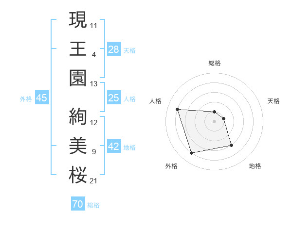 現王園 絢美桜さんを姓名の画数から五運を鑑定