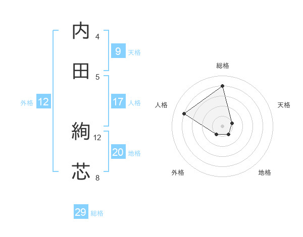 内田 絢芯さんの総格は29画の4点!