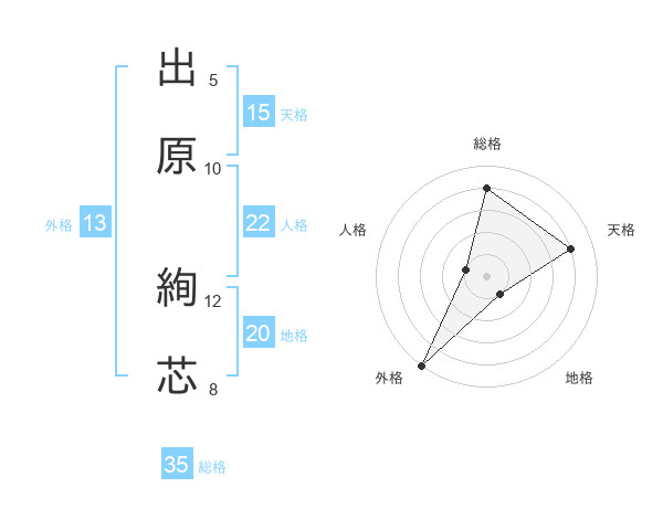 出原 絢芯さんの天格は15画の4点!
