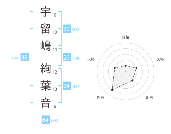 宇留嶋 絢葉音さんの総格は64画の1点!