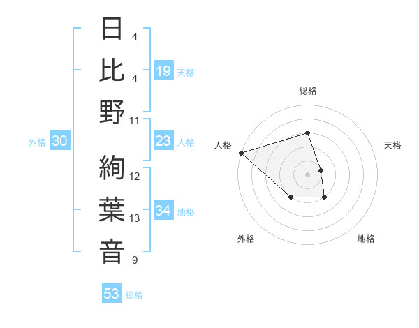 日比野 絢葉音さんを姓名の画数から五運を鑑定