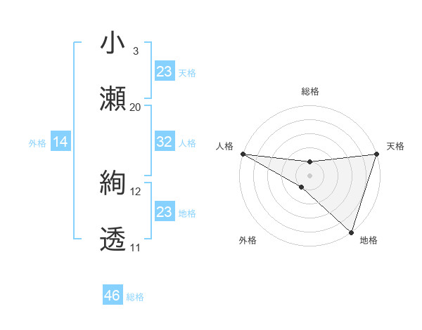 小瀬 絢透さんの天格は23画の5点!