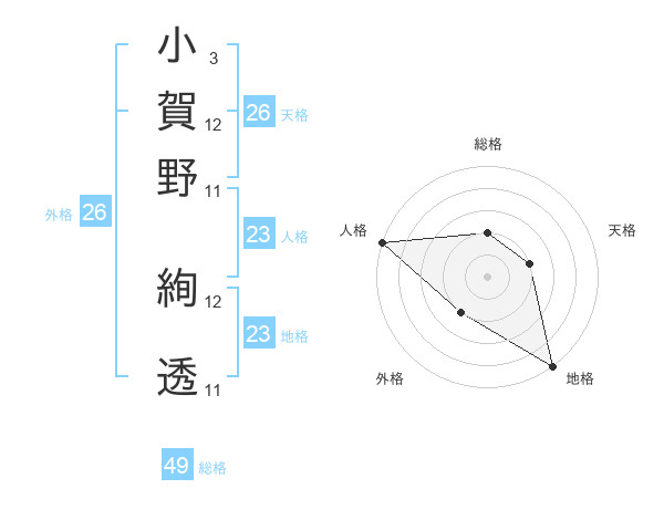 小賀野 絢透さんを姓名の画数から五運を鑑定