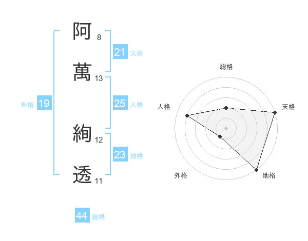 阿萬 絢透さんの天格は21画の5点!