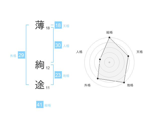 薄 絢途さんの総格は41画の5点!