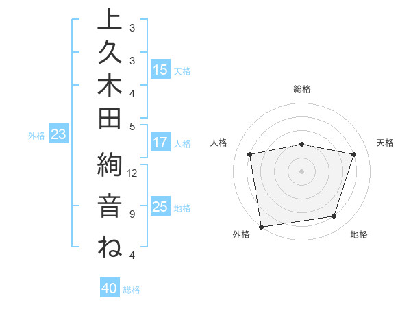 上久木田 絢音ねさんを姓名の画数から五運を鑑定