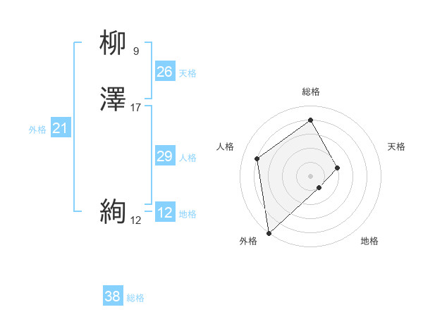 柳澤 絢さんを姓名の画数から五運を鑑定