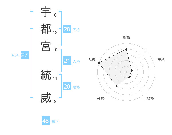 宇都宮 統威さんを姓名の画数から五運を鑑定