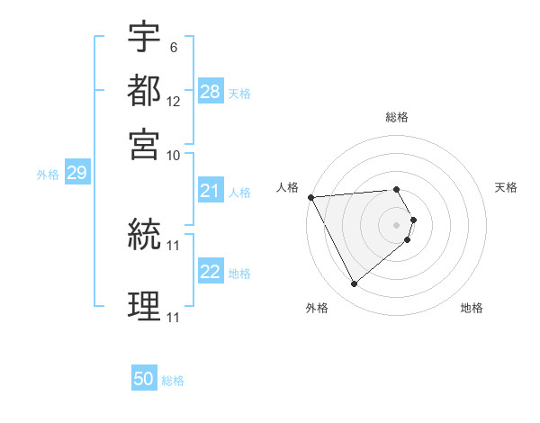 宇都宮 統理さんの総格は50画の2点!