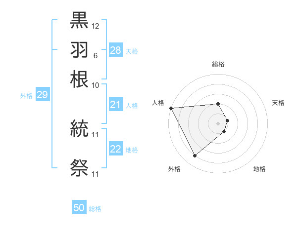 黒羽根 統祭さんの総格は50画の2点