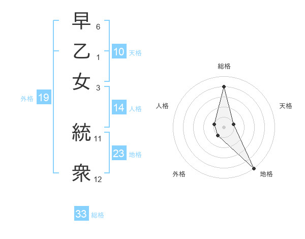 早乙女 統衆さんの総格は33画の4点!