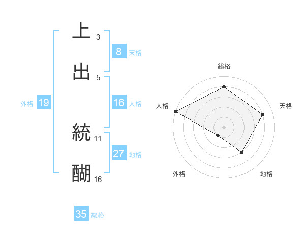 上出 統醐さんの人格は16画の5点!